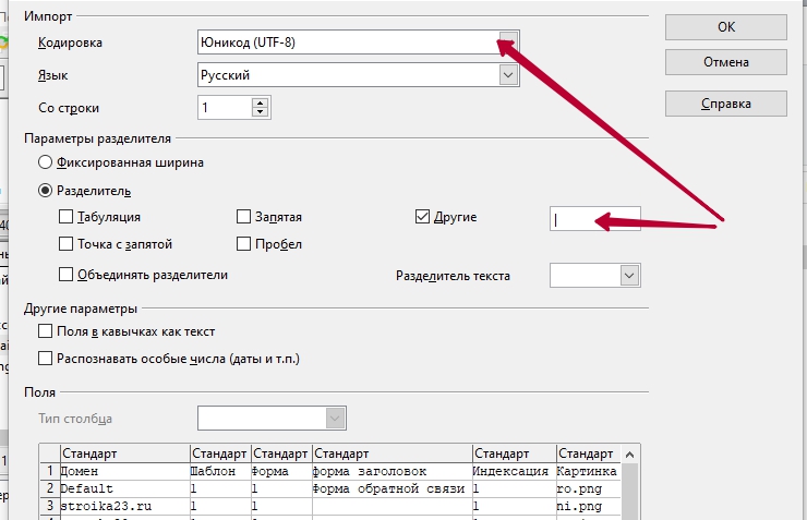 2. При открытии файла надо выбрать кодировку UTF-8, разделитель указать |