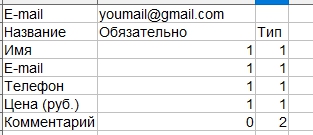 2. В первой строке во втором столбце введите емейл, на который вы хотите получать сообщения. Можно указать несколько адресов через запятую.